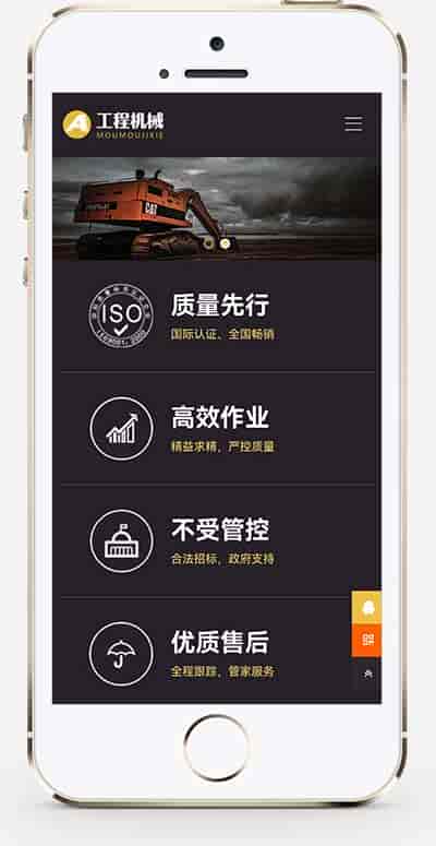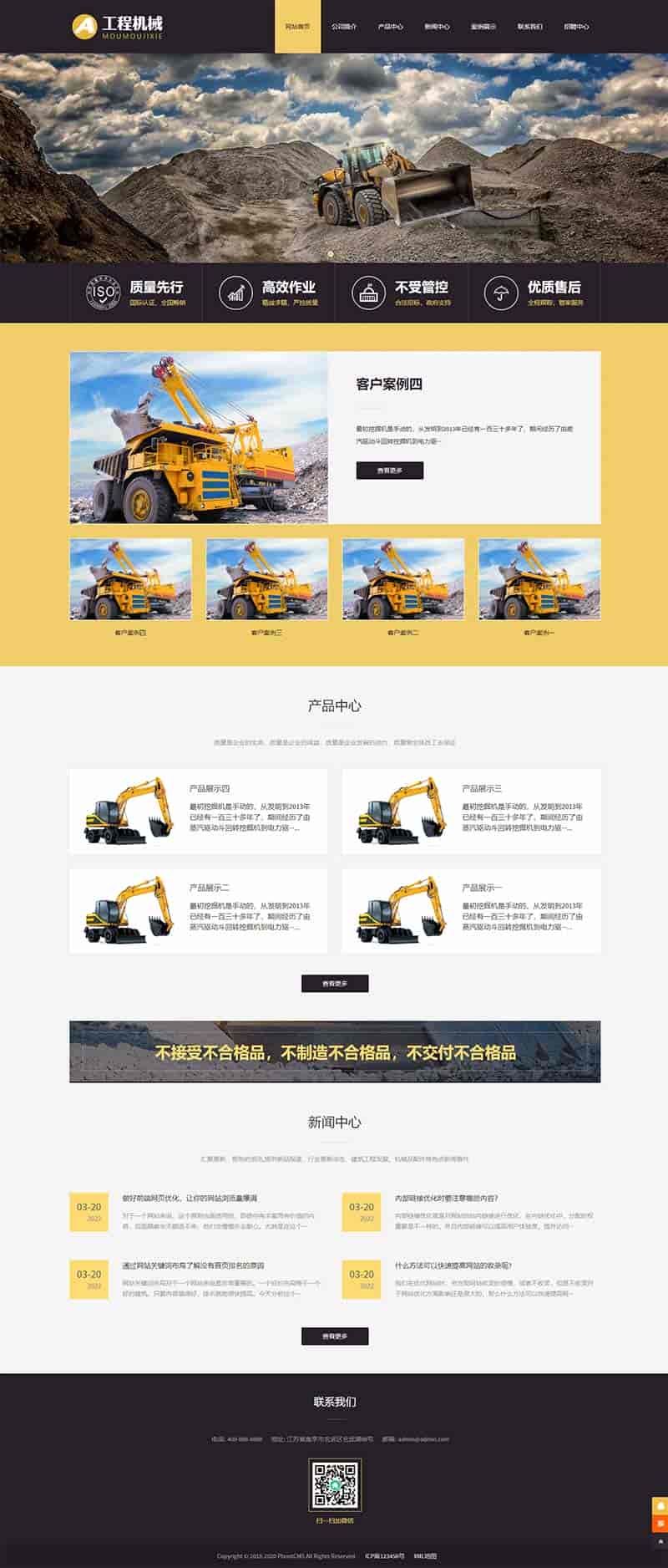 (自适应手机端)黄色响应式工程机械设备pbootcms网站模板 HTML5挖掘机网站源码下载PbootCMS内核开发的网站模板,该模板适用于挖掘机网站、工程机械设备网站等企业,当然其他行业也可以做,只需要把文字图片换成其他行业的即可;自适应手机端,同一个后台,数据即时同步,简单适用!附带测试数据!友好的seo,所有页面均都能完全自定义标题/关键词/描述,PHP程序,安全、稳定、快速;用低成本获取源源不断订单!后台:域名/admin.php