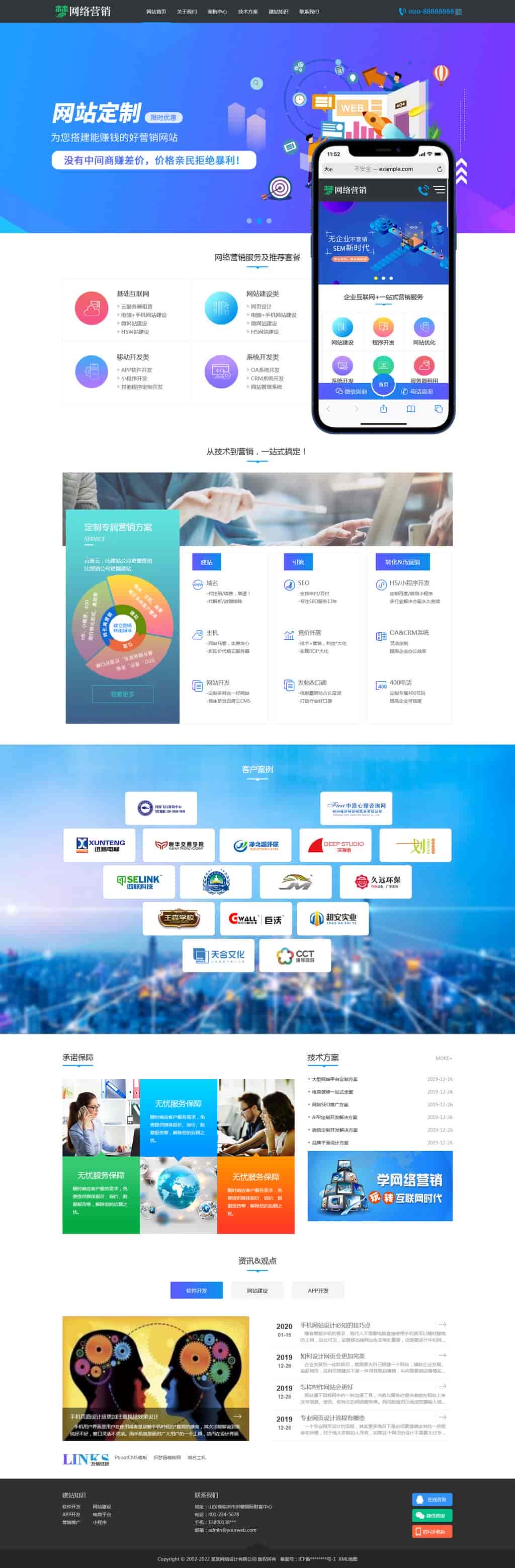 模板名称:(带手机端)蓝色大气网络营销网站建设建站公司pbootcms模板