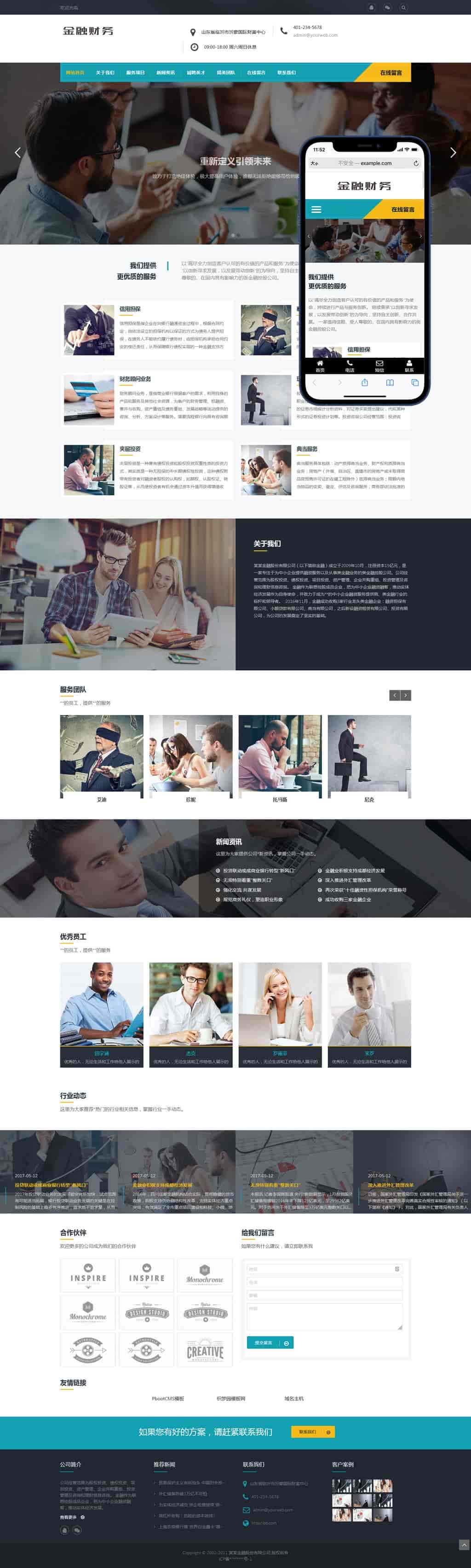 模板名称:(自适应手机端)响应式金融信贷担保投资风险类资管理机构pbootcms模板