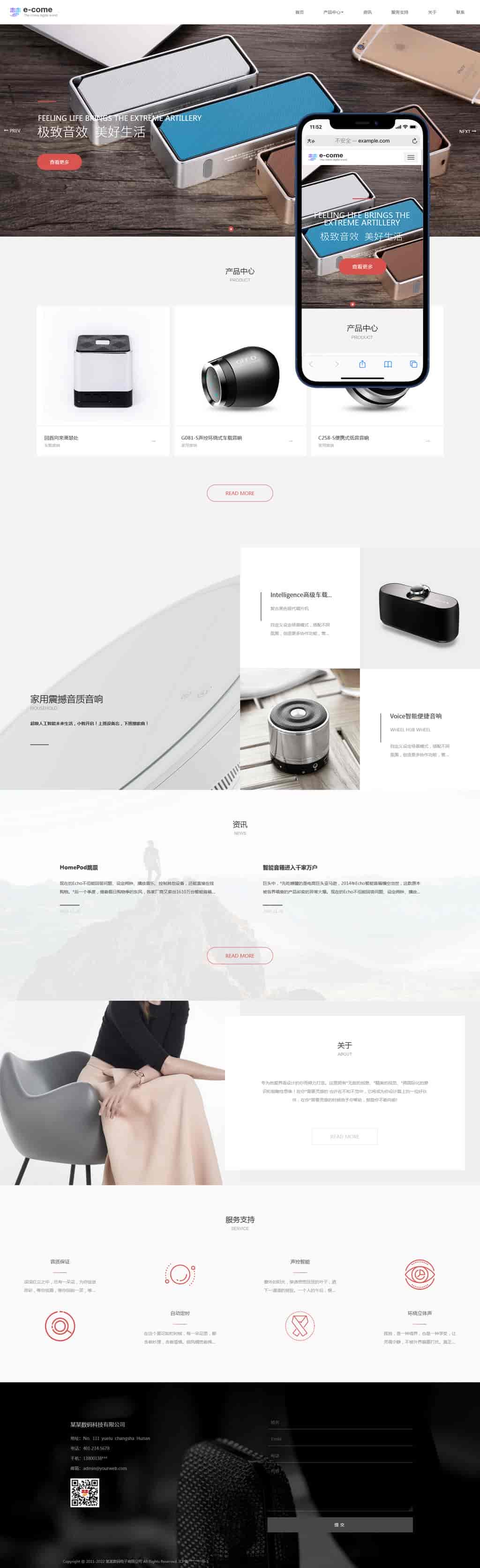 模板名称:(自适应手机端)响应式数码电子html5智能音响设备网站pbootcms模板