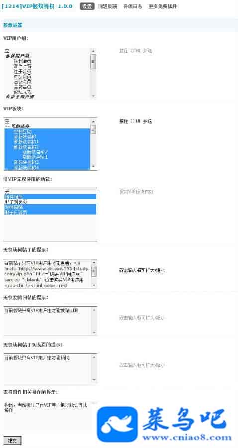 上边的对非VIP用户组的限制是可以设置的,也就是你可以设置非VIP用户组能访问帖子列表页,但是却不能查看贴内内容页,或者允许非VIP看帖却不能下载。设置灵活,随意搭配。