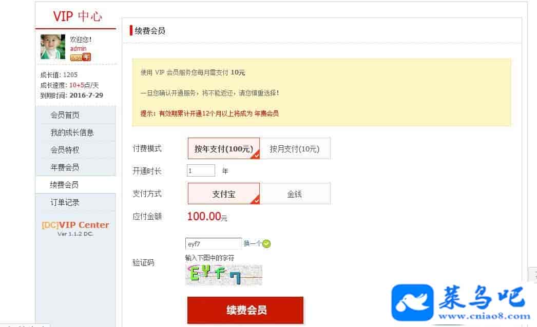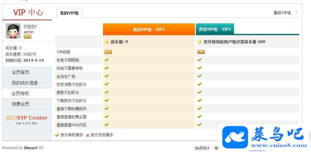 VIP等级是通过 成长值 来计算的,成长值每天增长(增长值可后台设置),如果VIP到期了,不再赋予VIP权限,成长值逐日减少(减少值后台可设)