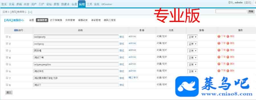 5、后台可对视频进行分类管理