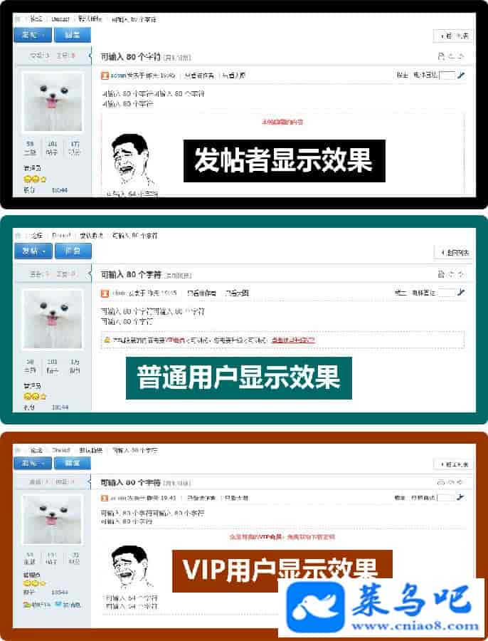 本插件会在PC发帖编辑器里增加一个发布隐藏内容的标签,与系统自带标签无关联,发布的内容只有指定的VIP用户组才能查看,普通会员即使回帖也是不可见的,可设置使用的版块、VIP可见用户组、可见的提示、不可见的提示、作者本人的提示、游客是否提示等等,并且在论坛的自身搜索结果页面不会暴露隐藏的内容,保证信息私密仅VIP用户可见,插件支持论坛手机触屏版显示处理,保证隐藏信息不会通过触屏版泄露