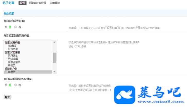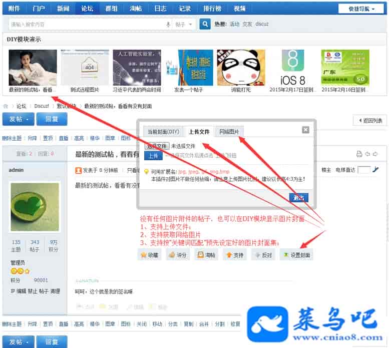 1、可手动为任意帖子添加/重置封面图片,手动设置封面用户组权限可控;