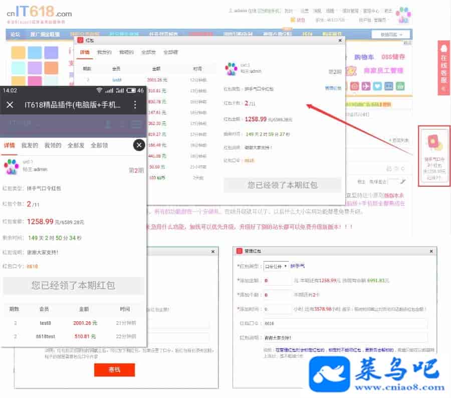 兼容性强:兼容更多电脑与手机模板,只需要一个论坛很常见的通用底部接口global_footer,可以在帖子页边侧显示浮动模块,在本帖子任何地方,点击浮动模块就会有红包信息弹出层,同时红包信息会显示在帖子内部,更容易增加帖子人气,更加显眼