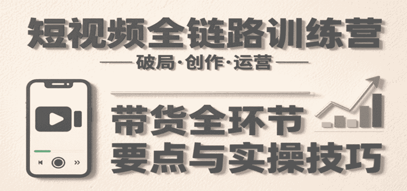 短视频全链路训练营:含破局、创作、运营、带货等多方面,详解各环节要点与实操技巧