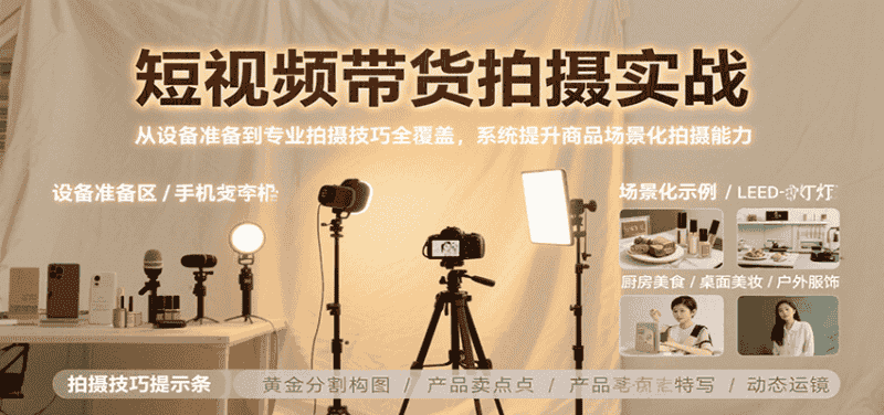 短视频带货拍摄实战,从设备准备到专业拍摄技巧全覆盖,系统提升商品场景化拍摄能力
