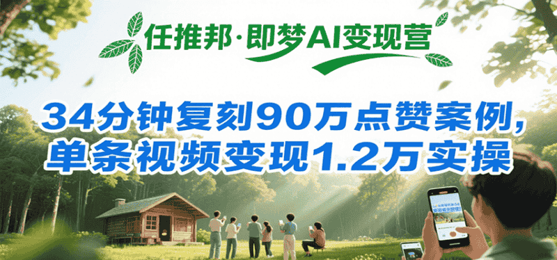 任推邦·即梦AI变现营,34分钟复刻90万点赞案例,单条视频变现1.2万实操