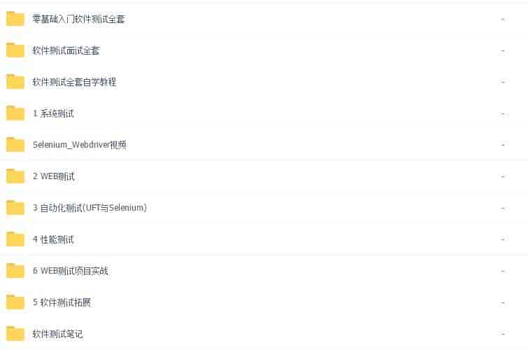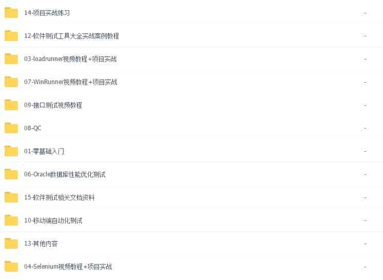 我就不一一截图了,以上截图内容全为教程中一部分,不用觉得很多学起来内,其实说的都是精髓,建议看刘德宝的教程,店家到时会教你怎么学,很快如果只是为了赶紧找工作一个月就能保证你找到,如果不急的话当然建议都学完是最好的,里面还包含了就业面试题,笔试题和简历的包装总之很齐全的教程了,原价是4900元(加起来300G资料更是价值16800元),没有夸张前者适合快速要工作的视频都是精髓讲解,后者可以在工作中看看,会有很多其他知识对于测试来说学会也有很大的好处,两套完整的测试教学视频各有各的好处可以相辅相成配合观看哈哈其实站长而言前者学完其实就够你工作用的了,其他你在工作中其实就已经慢慢的累计实际工作经验了。
