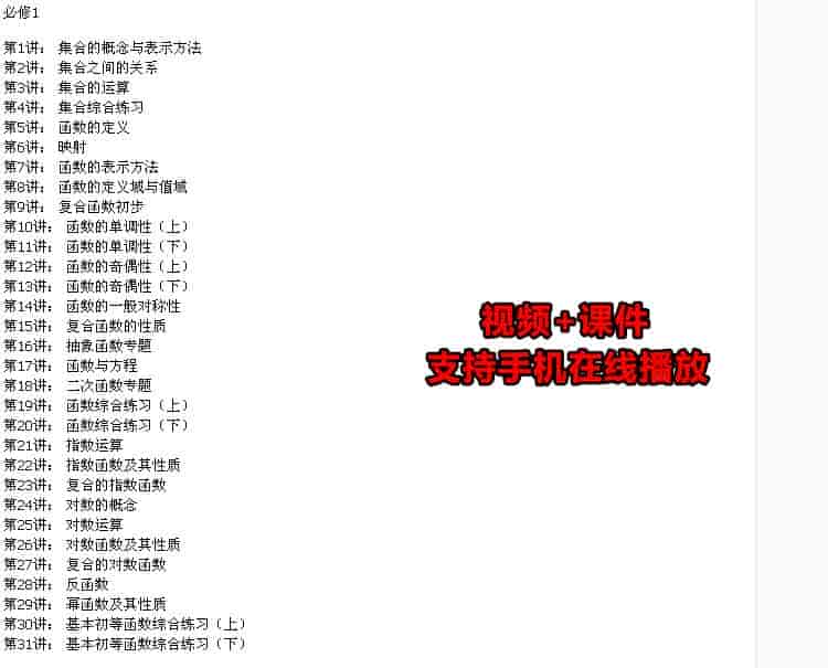 高中数学视频教程12345 高中一二年级数学必修全套课外辅导