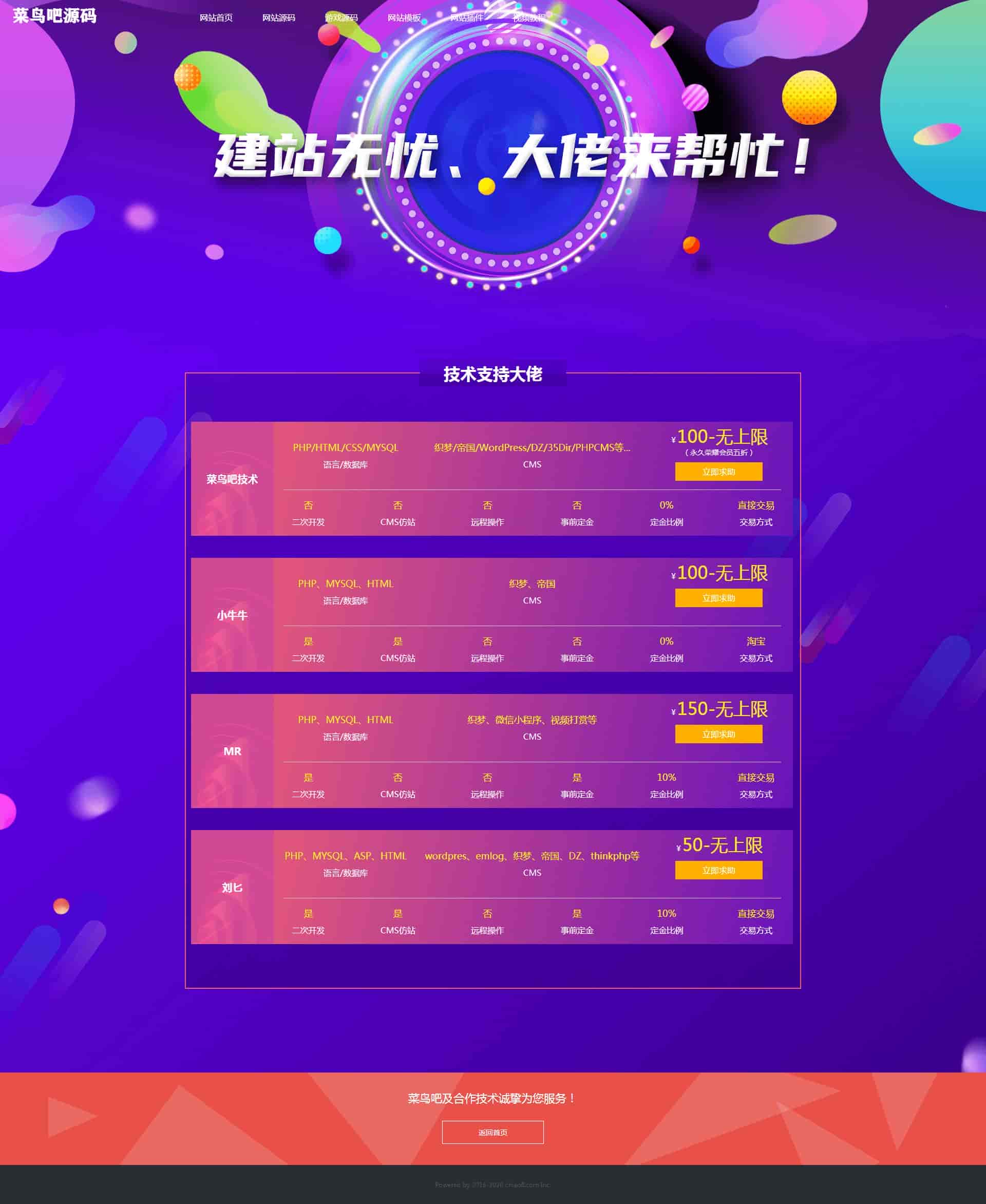 [免费源码] 免费下载 漂亮大气单页HTML扒的某站技术支持展示页面