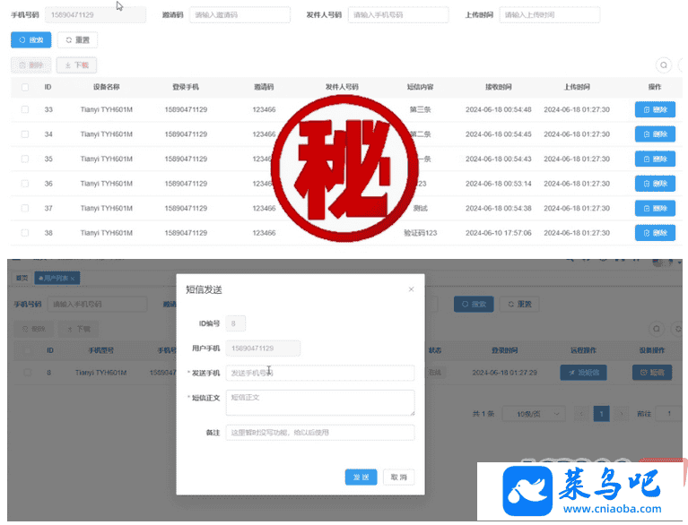 ②发送短信(自定义输入收信号码以及短信内容,带发送记录)