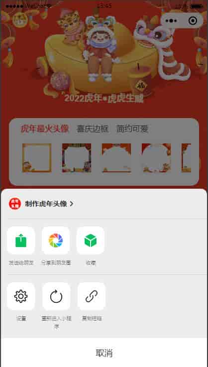 【已测】2022虎年新ui头像框制作生成小程序+可开流量主