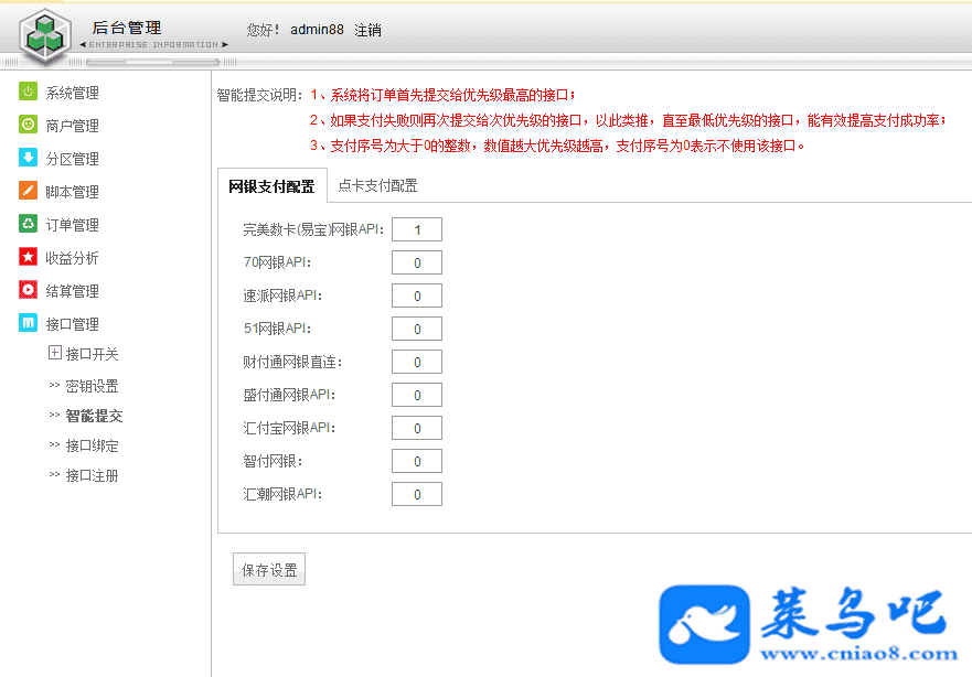 8、前台可设置默认充值线路(即可分散式多台服务器来支撑多个充值线路)
