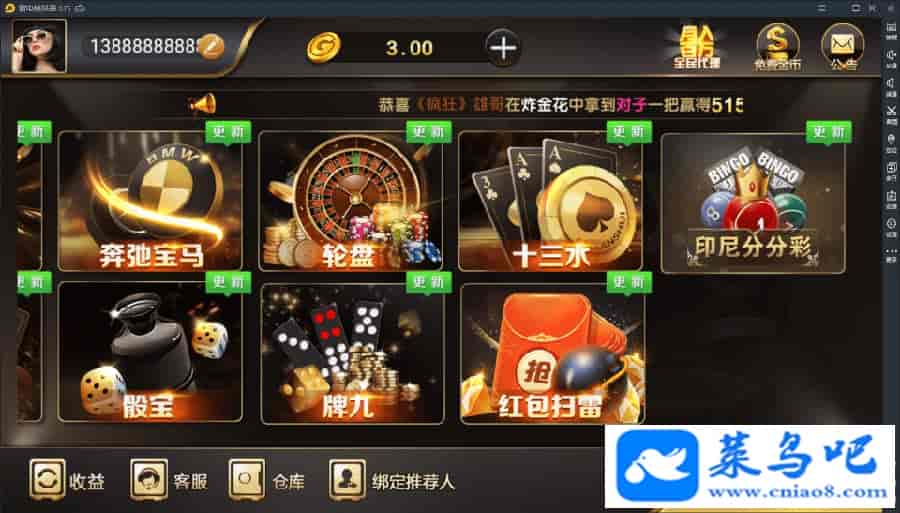 这个算是独一无二的版本了,游戏不一样哈,其他功能都是一样的。主要增加了红包和SSC,哈哈