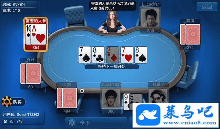 这款德州扑克客户端是coco2dx的,服务器是java,数据库是MySQL