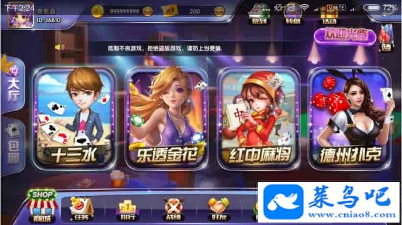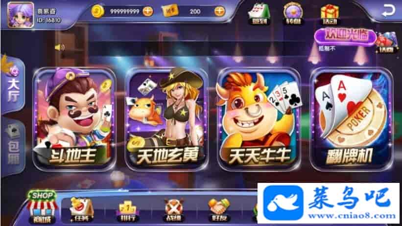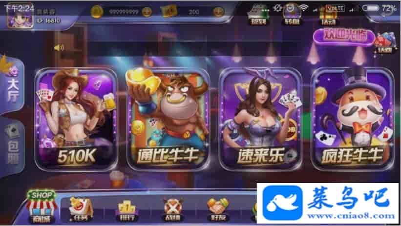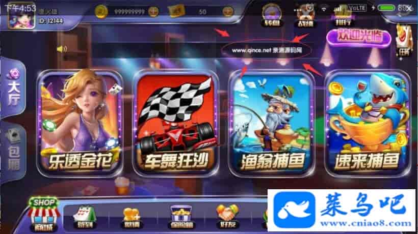已有游戏玩法:水浒传 摇钱树 速来捕鱼 龙马奔腾 超级赛车 大白鲨 欢乐牛牛 血战麻将 乐透金花 四人牛牛 ATT翻牌机 天天牛牛 百家乐 欢乐斗地主