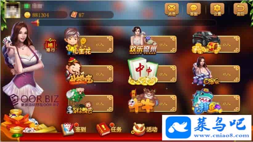 9款游戏包括:红中麻将,捕鱼,四人牛牛,德州扑克,斗地主,炸金花,百家乐,**风云,森林舞会。
