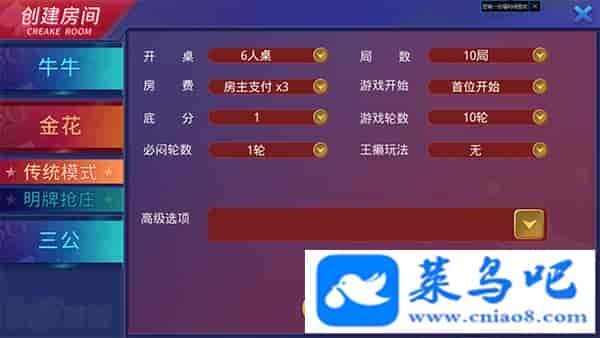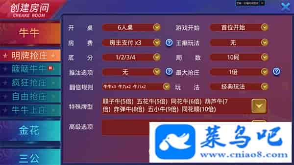 牛牛玩法: 明牌抢庄、簸簸牛牛、疯狂抢庄、自由抢庄、牛牛上庄
