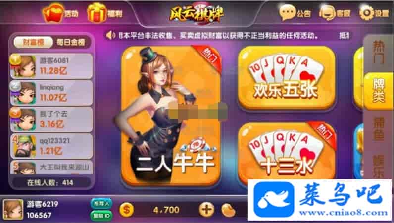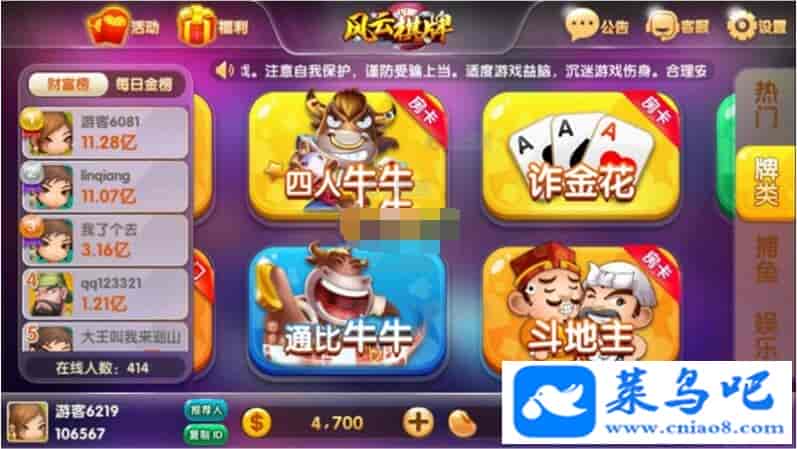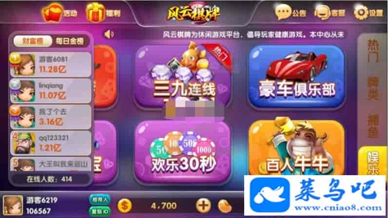 风云棋牌荣耀二开棋牌全套修复源码运营级别源码