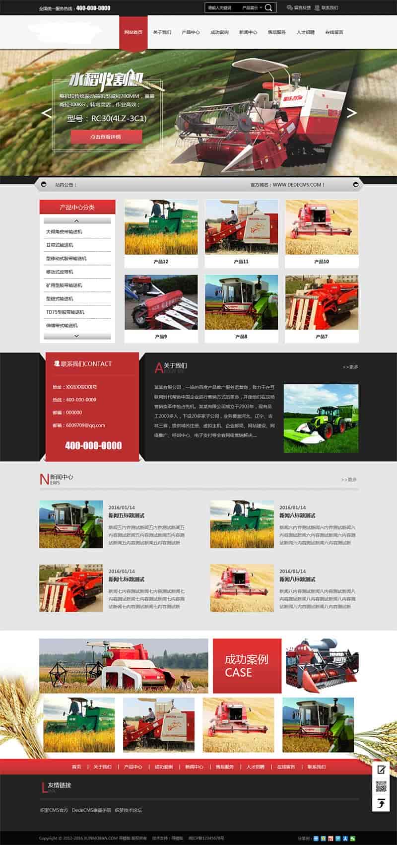 [织梦模板] 织梦dedecms收割机农业机械设备公司网站模板(带手机移动端)