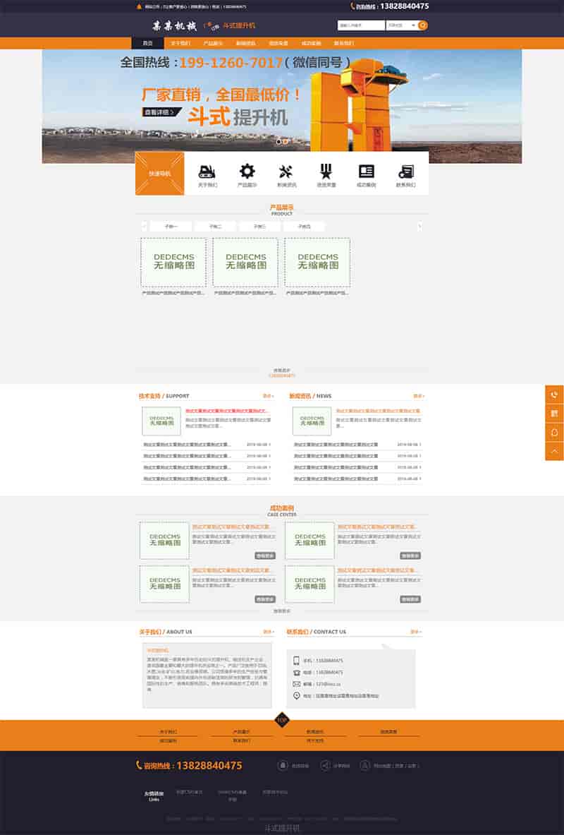 织梦dedecms斗式提升机机械设备公司网站模板(带手机移动端)模板介绍: