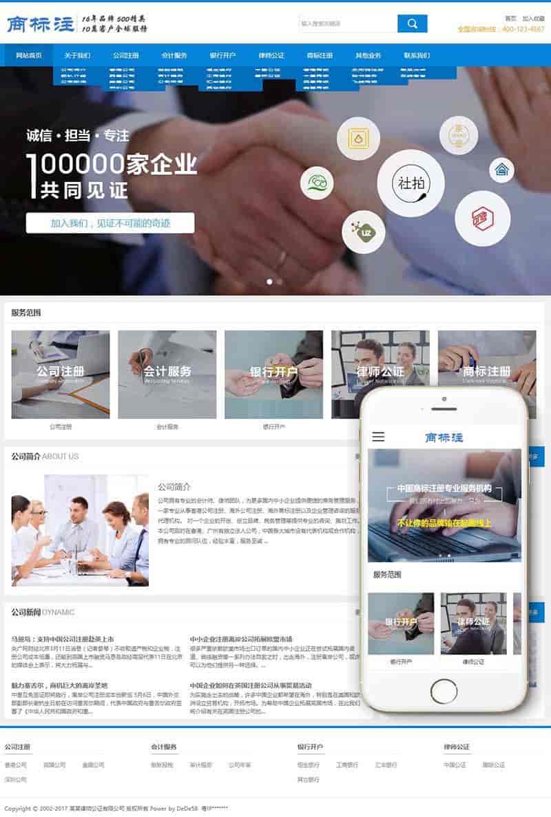 织梦dedecms公司商标注册律师公证会计服务公司网站模板(带手机移动端)模板介绍: