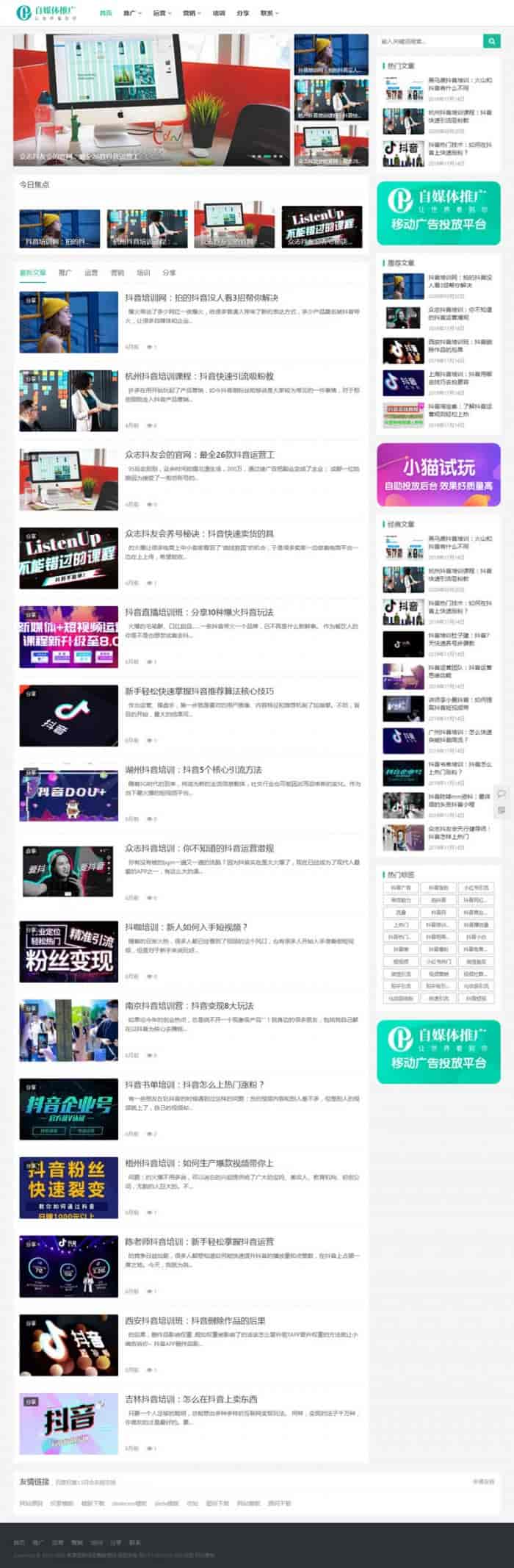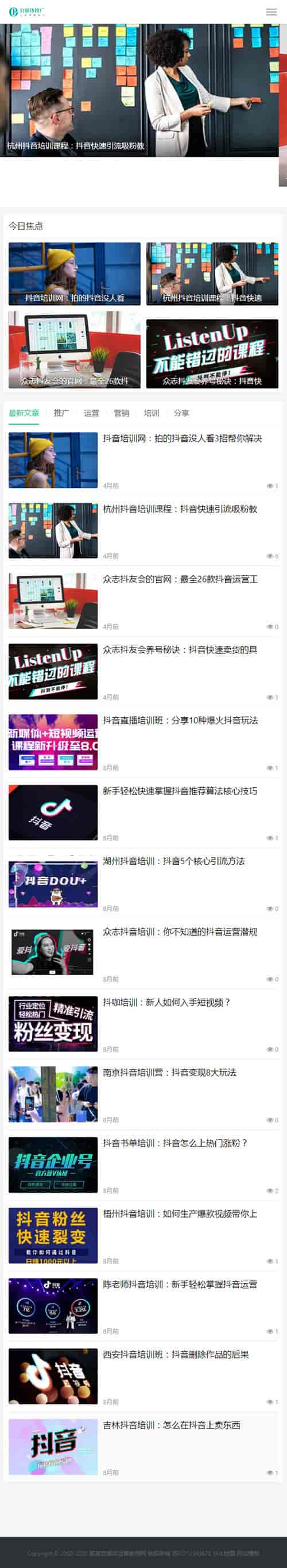 织梦dedecms响应式自媒体推广运营培训教程网站模板(自适应手机移动端)本套织梦模板采用织梦最新内核开发的模板,这款模板使用范围广,不仅仅局限于一类型的企业,培训教程网、自媒体运营网站类的网站都可以用该模板。你只需要把图片和文章内容换成你的即可,颜色都可以修改,改完让你耳目一新的感觉!布局规整,利于用户体验,手工书写DIV+CSS,代码精简。
