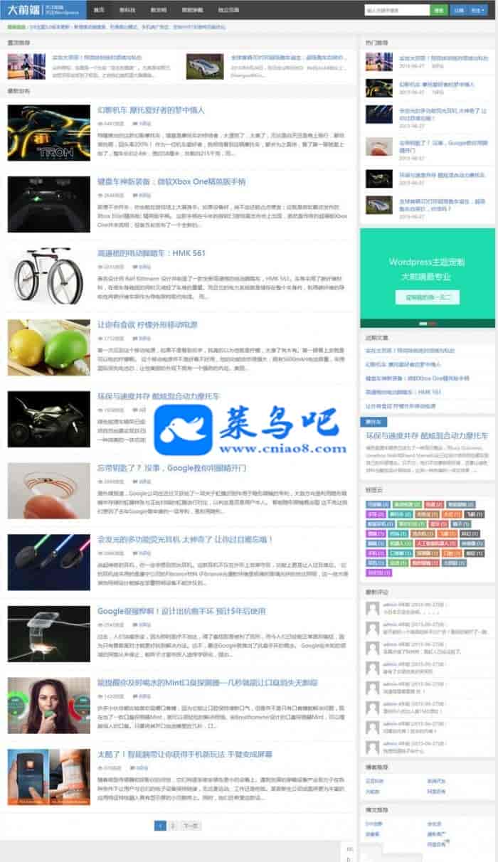 主题介绍:大前端D8 主题是一款非常牛逼的WordPress博客主题,响应式,功能齐全,支持手机,电脑,平板,非常适合做博客站,主题内置了7个小工具,多种侧栏组合和6+独立页面:投稿、标签、存档、读者墙、友链、案例展示.等等等更多功能,下面看看这次