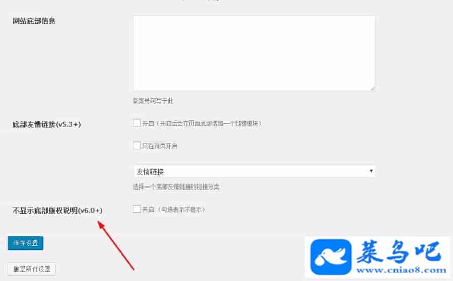 新增去除底部版权说明的选项(主题设置-基本)
