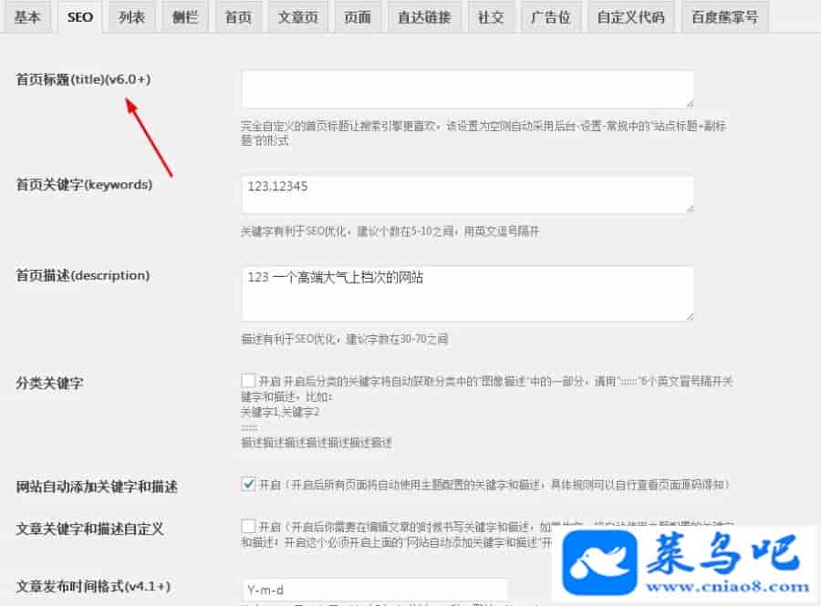 新增首页SEO标题设置(主题设置-SEO)