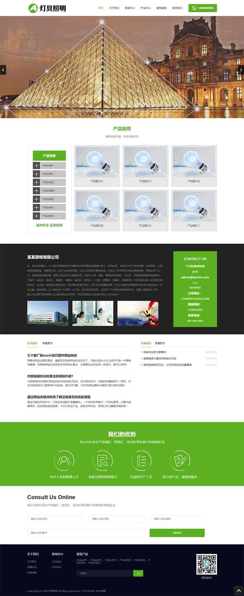(自适应手机端)pbootcms响应式绿色灯具照明网站模板 LED光源电灯网站源码下载PbootCMS内核开发的网站模板,该模板适用于灯具照明网站、LED电灯网站等企业,当然其他行业也可以做,只需要把文字图片换成其他行业的即可;自适应,同一个后台,数据即时同步,简单适用!附带测试数据!友好的seo,所有页面均都能完全自定义标题/关键词/描述,PHP程序,安全、稳定、快速;用低成本获取源源不断订单!后台:域名/admin.php