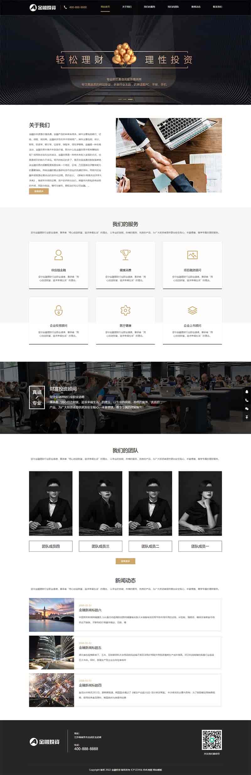 (自适应手机端)响应式投资理财类网站pbootcms模板 金融机构财务管理类网站源码下载PbootCMS内核开发的网站模板,该模板适用于投资理财网站、金融机构网站等企业,当然其他行业也可以做,只需要把文字图片换成其他行业的即可;自适应,同一个后台,数据即时同步,简单适用!附带测试数据!友好的seo,所有页面均都能完全自定义标题/关键词/描述,PHP程序,安全、稳定、快速;用低成本获取源源不断订单!后台:域名/admin.php