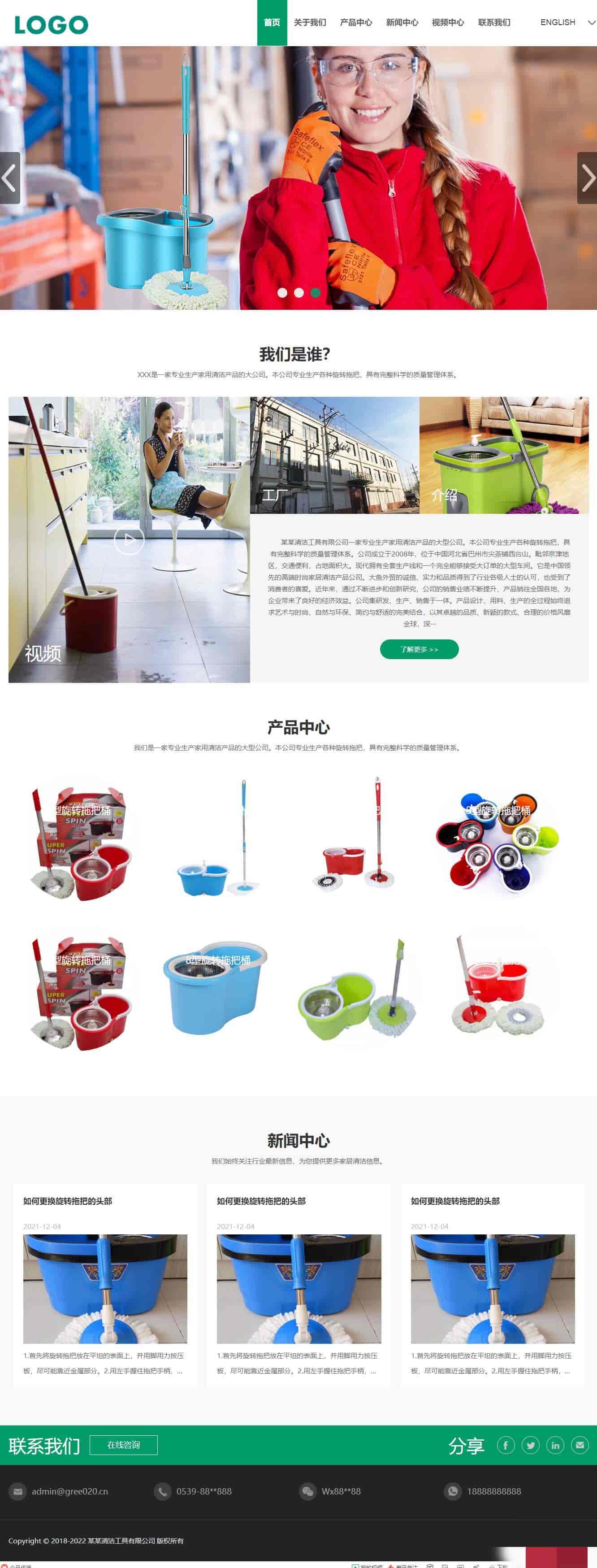 (自适应手机)中英双语家政保洁清洁工具公司网站pbootcms模板
