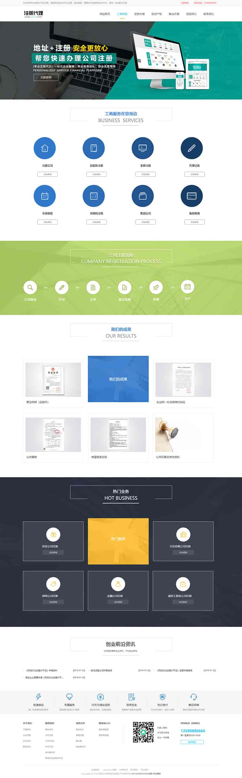 (PC模板)工商注册资质代办公司注册类网站pbootcms模板 会计财务网站源码下载PbootCMS内核开发的网站模板,该模板适用于公司注册网站模板、会计财务网站源码等企业,当然其他行业也可以做,只需要把文字图片换成其他行业的即可;简单适用!附带测试数据!友好的seo,所有页面均都能完全自定义标题/关键词/描述,PHP程序,安全、稳定、快速;用低成本获取源源不断订单!后台:域名/admin.php
