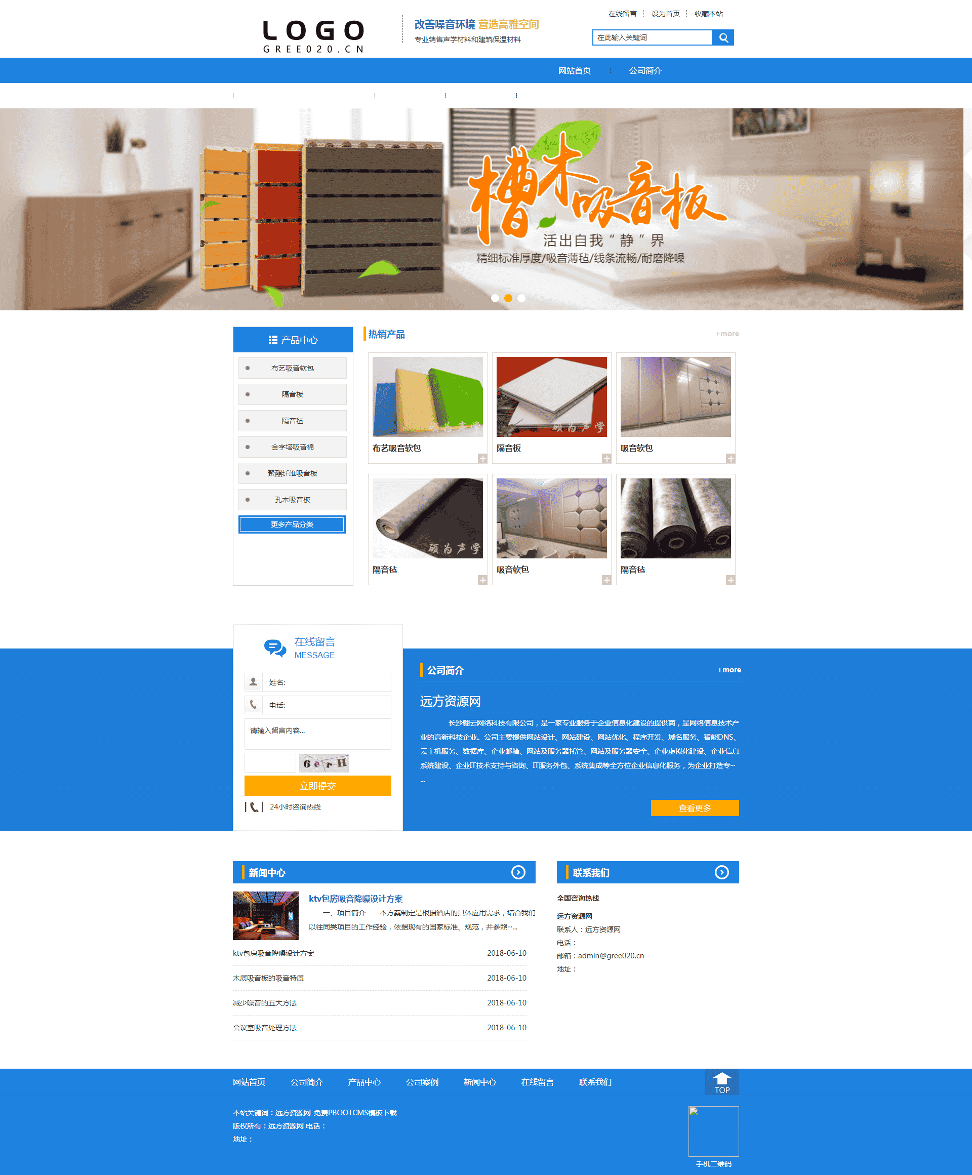 PbootCMS内核开发的网站模板 声学材料和建筑保温材料pbootcms网站模板响应式端同一个后台,数据即时同步,简单适用!附带测试数据!完美的seo,所有页面均都能完全自定义标题/关键词描述,PHP程序,安全、稳定、快速;