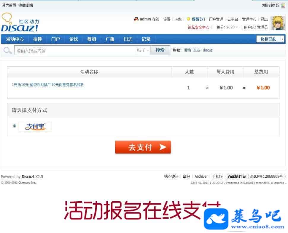 6、活动作业功能:报名成功参加活动的会员,活动贴上会显示“发表活动作业”的按钮,会员可以通过此按钮轻松发表和分享自己的活动感受。另外在会员发贴时,都会有提示,他参加的活动需要他发表活动作业,这样一场活动下来会让论坛获取很多会员分享的高质量的活动作业贴。当然这项功能还可以更好的用在征文、征图、摄影外拍、美食聚餐评价、产品试用等活动上。