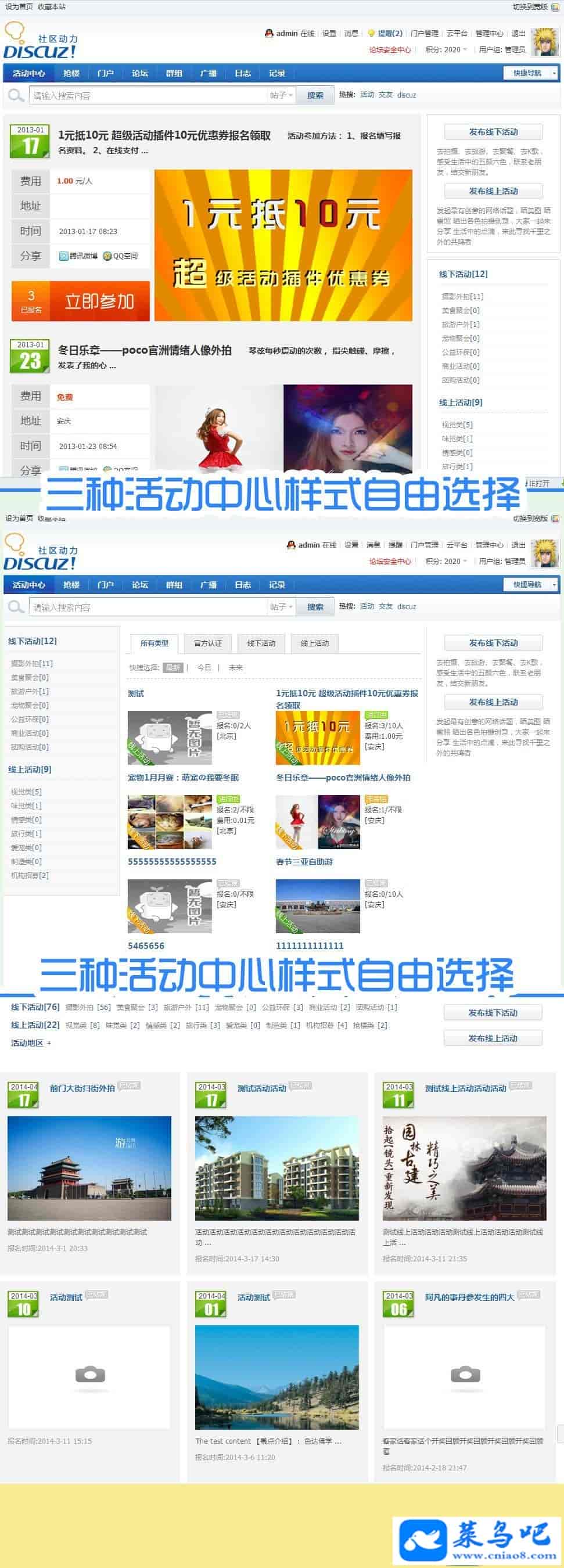 “超级活动”具有下面的优点:1、把活动划分为线上和线下二种,都可以分别设置不同的分类。