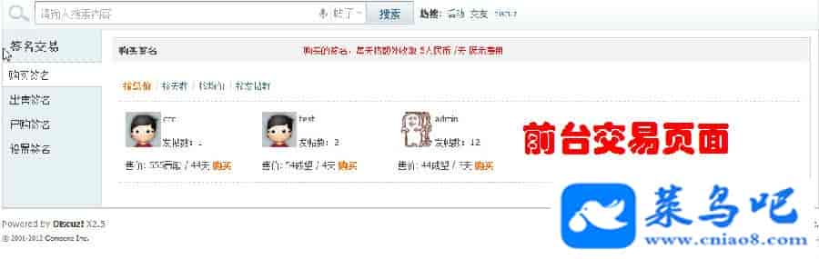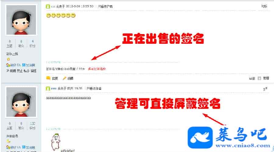 3.签名交易:用户可将自己签名位出租给其他会员 ( 已租签名系统也收取展示费,最大化消耗论坛积分 )