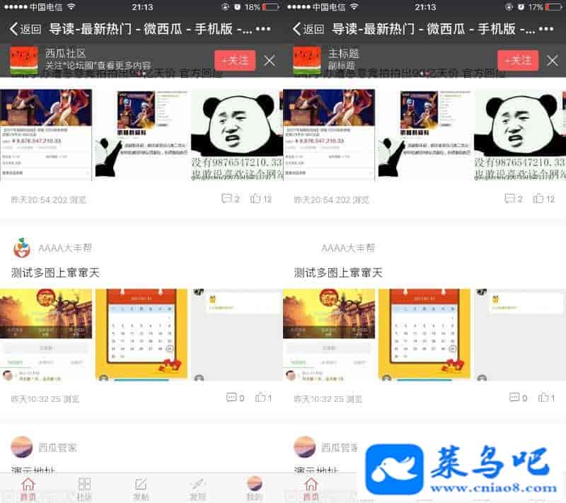 同时支持微社区、手机触屏版。