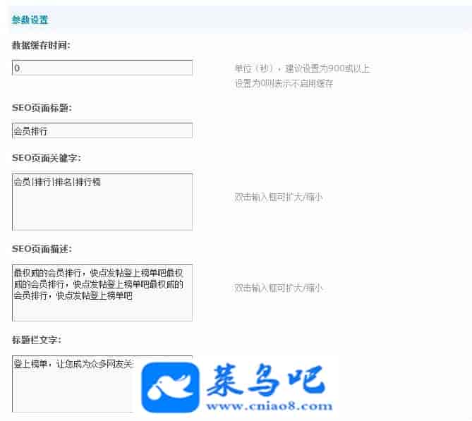 1、本插件可单独生成一个页面显示站点的会员的积分排行,金钱、贡献、威望等,帖子排行,主题排行,好友排行榜.