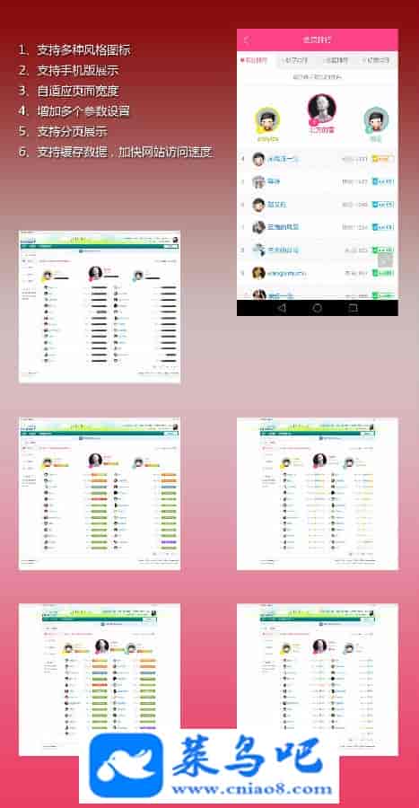手机版链接: 你的网址/plugin.php?id=qu_ranklist:ranklist&mobile=2