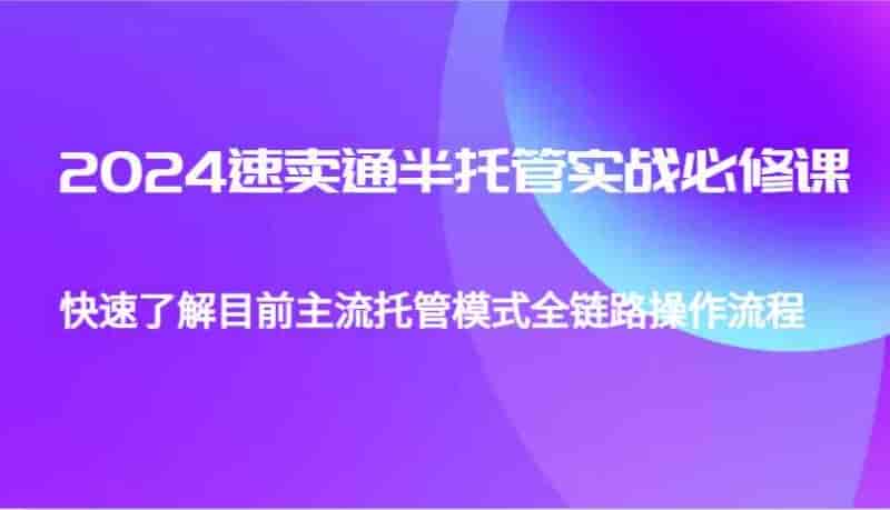 2024速卖通半托管从0到1实战必修课,帮助你快速了解目前主流托管模式全链路操作流程