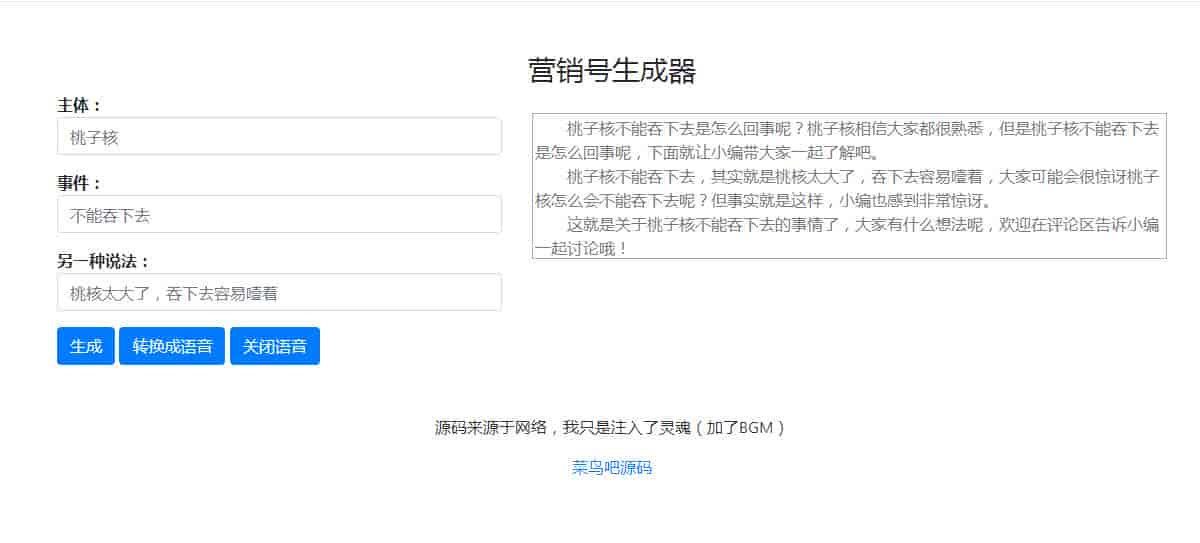 [免费源码] 免费下载 营销号生成器源码 营销号专用稿子文章一键生成