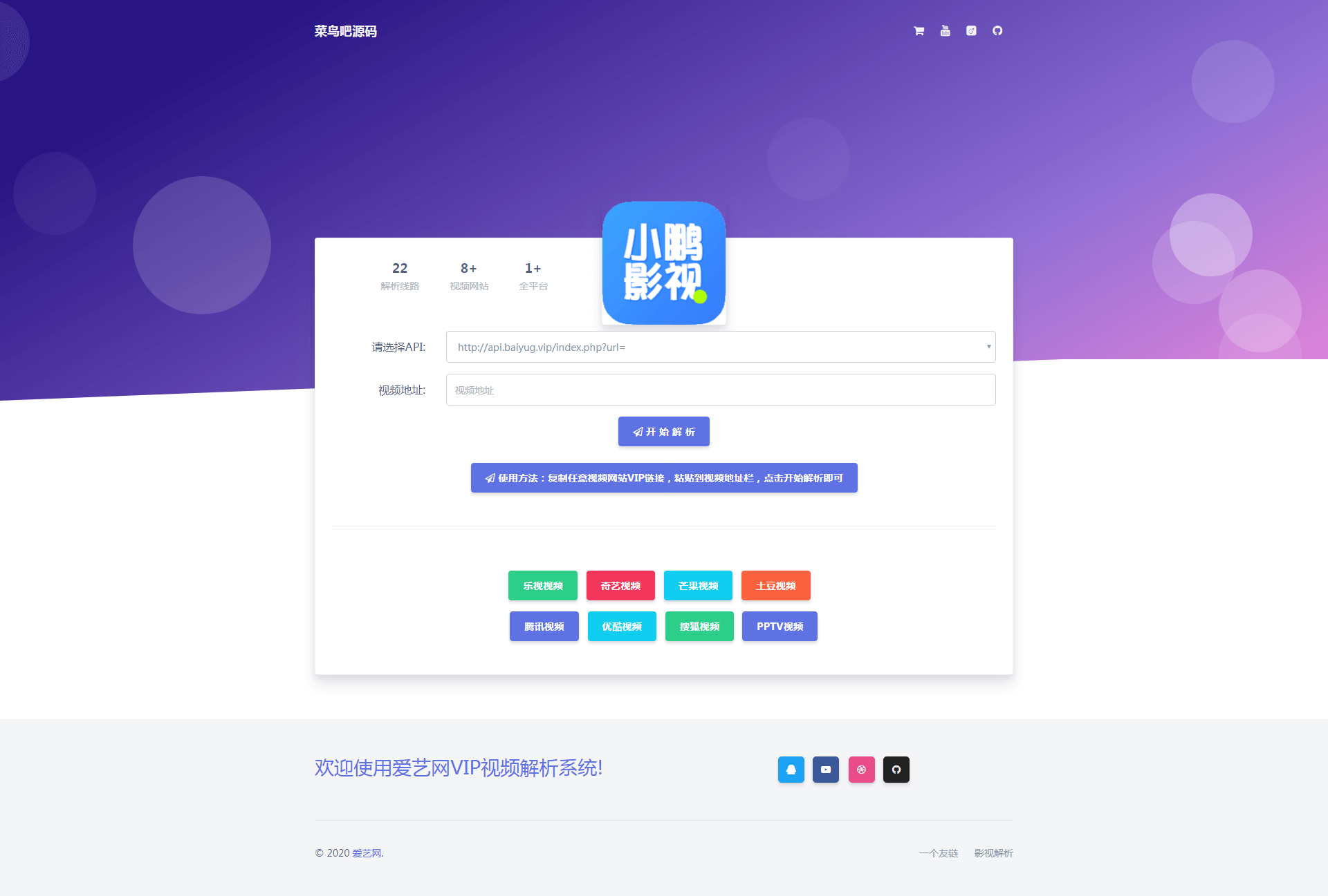 [免费源码] 免费下载 爱艺影视VIP视频解析系统html单页源码