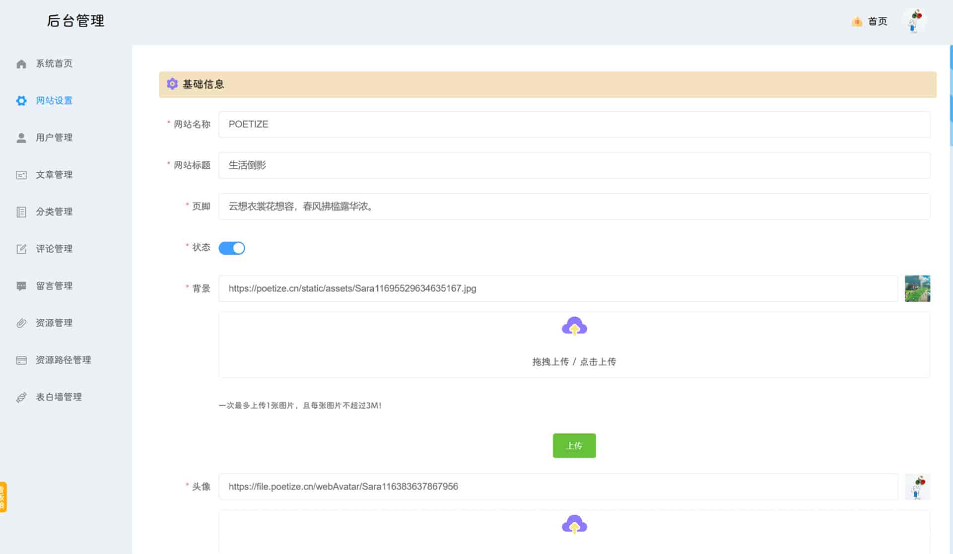 源码描述这是一套独立博客源码,有最美博客之称,采用JAVA语言开发,基于SpringBoot+Vue2+Vue3框架,移动端完全自适应。该源码拥有完整的前后端,内置两大功能系统,一、博客系统:文章,表白墙,图片墙,收藏夹,乐曲,视频播放,留言,友链,时间线,后台管理等功能。二、聊天室系统:朋友圈(时间线),好友,群等功能。