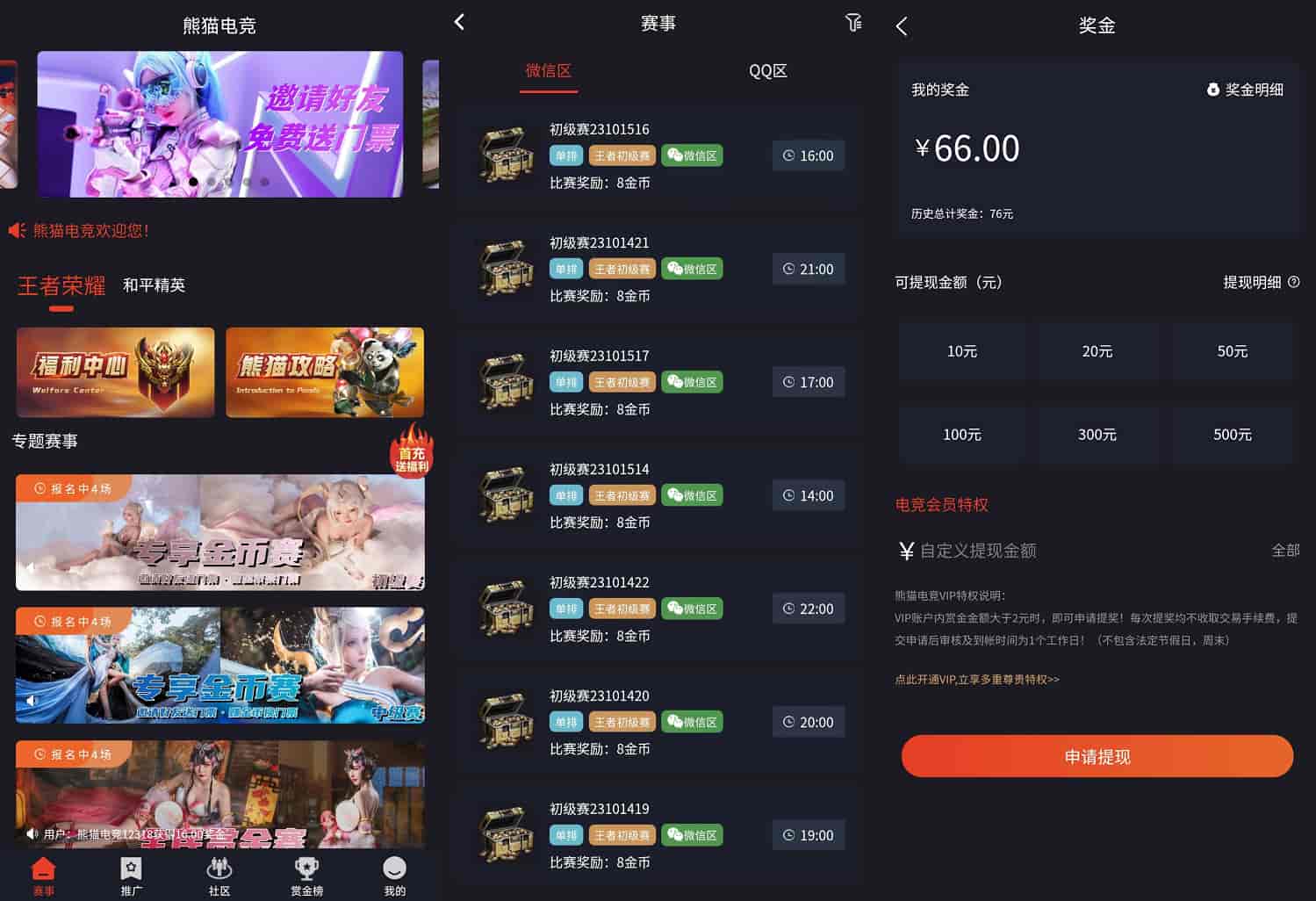 赏金赛源码,用户通过平台打比赛,赢了获得奖金奖励,