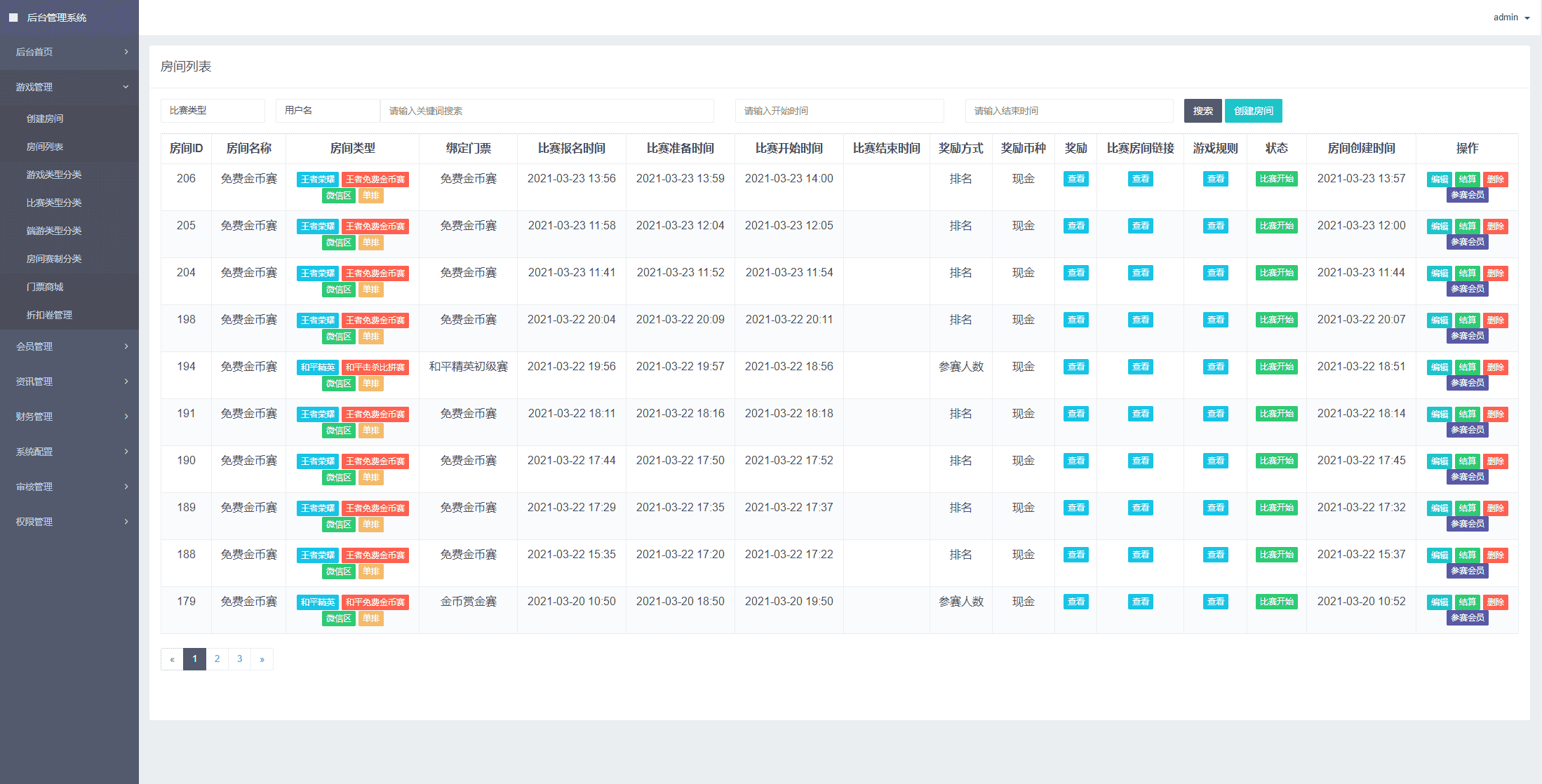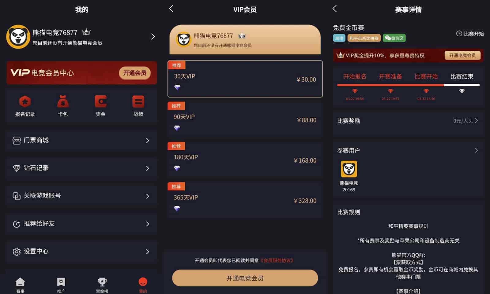 金币赛、赏金赛、vip赛等种赛事