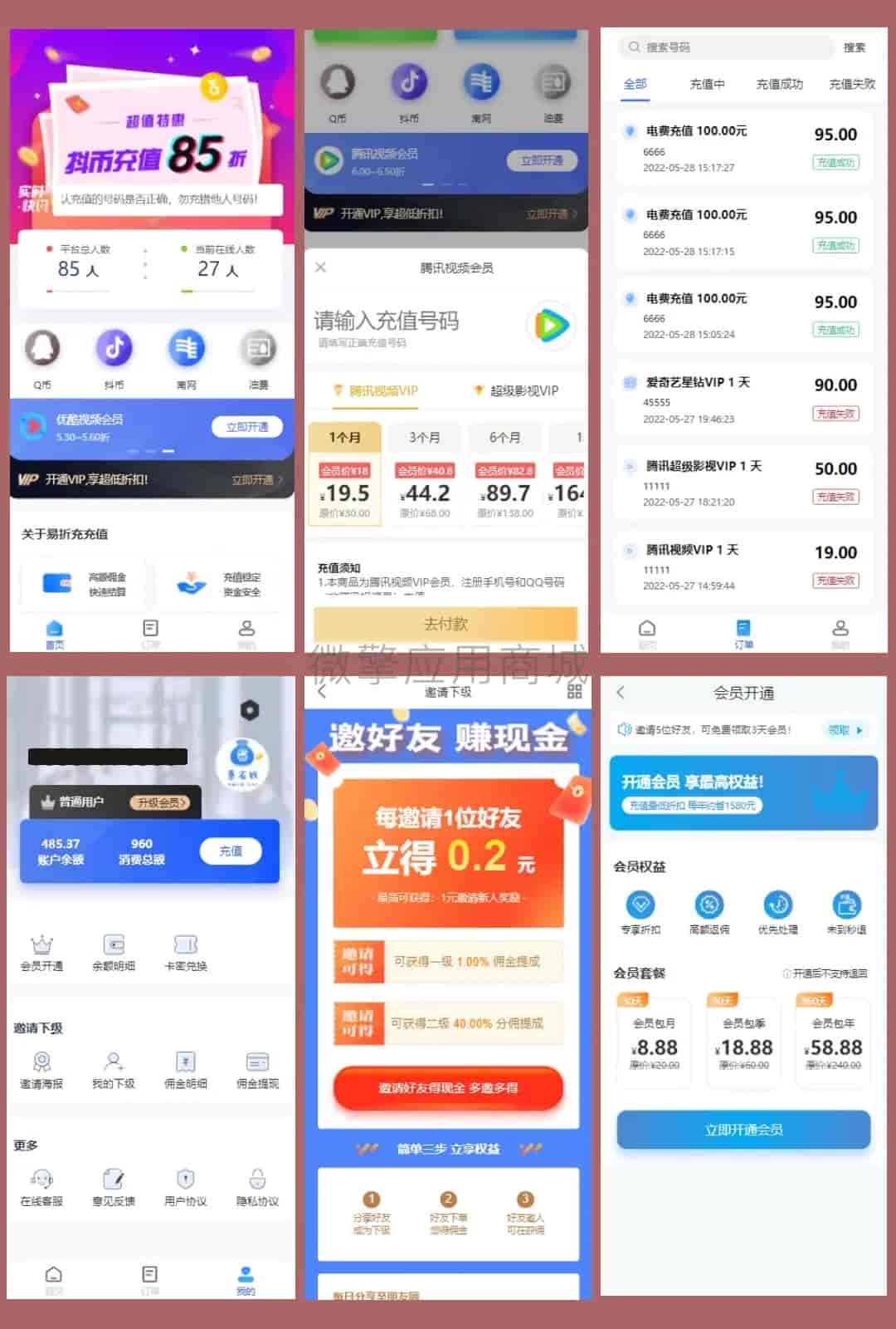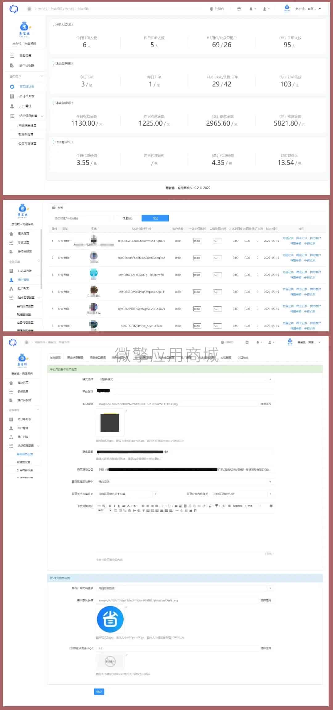 源码描述这是一套聚合充值系统,主要功能是用户前端在线下单充值,运营者在后台处理订单,一方面降低运营者提前垫资,一方面适合自有渠道的运营者。本套系统是完整版本,全开源,无加密,无授权,无任何缺斤少两,系统自带两个前端页面,结合了老款的,前端页面可在后台自定义切换,系统是H5的,对接的是微短信平台的接口,系统支持携号转网拦截+大猿人接口。本套系统是依赖微擎框架的,